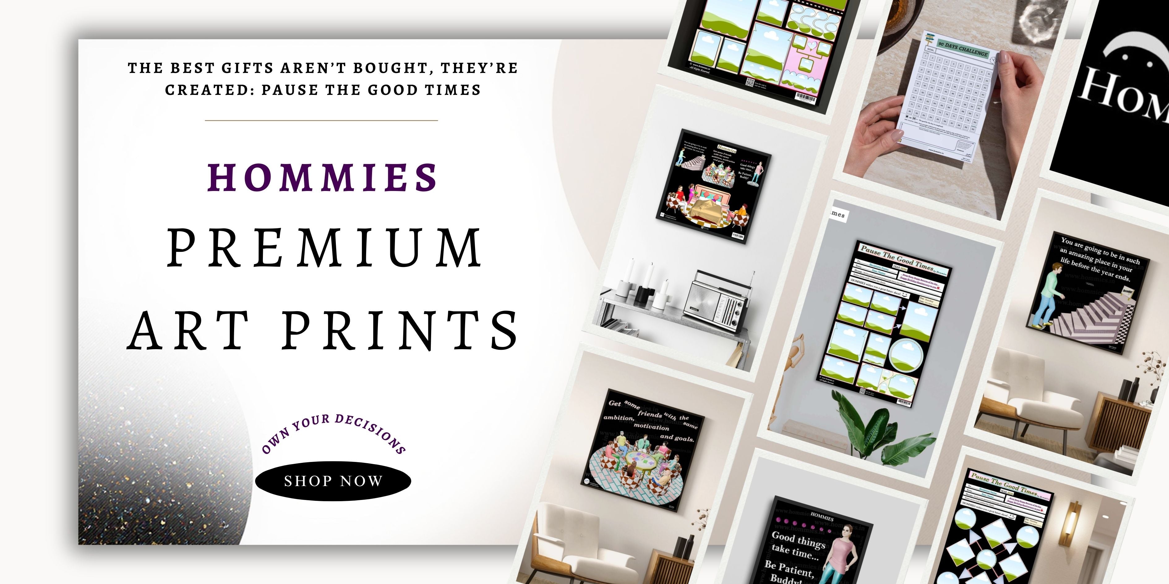 Our Prints aren't just wall decor; they are expressions of your personality. Printed with state-of-the-art UV printers that is built to last long. UV inks produce vibrant, true-to-life colours that enhance the visual appeal of printed materials. Hommies: Own Your Decisions. Proudly Made in India 🇮🇳