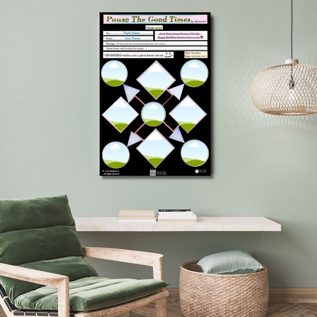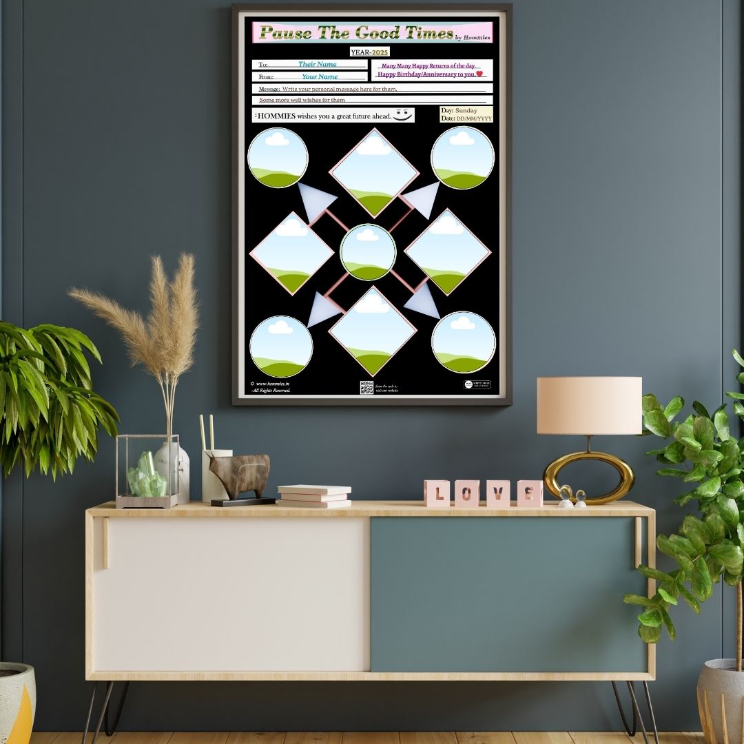 • Capture the moment, upload the photos, frame the memory, and Pause The Good Times. High quality photo-frame editable template, perfect for birthday, anniversary, or any event gift.