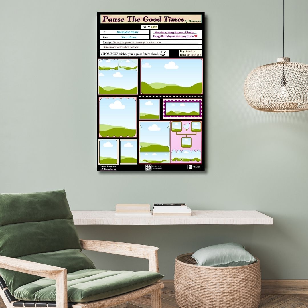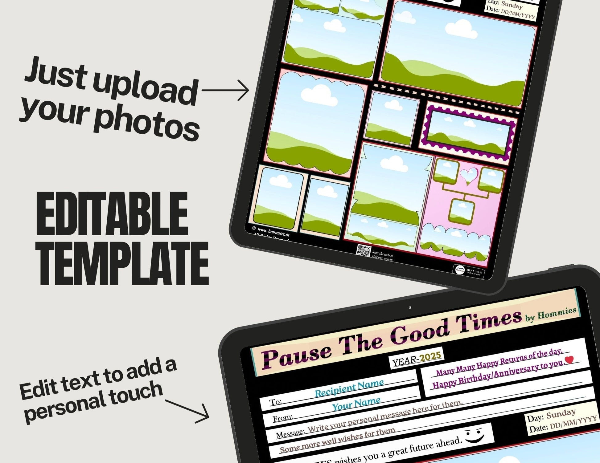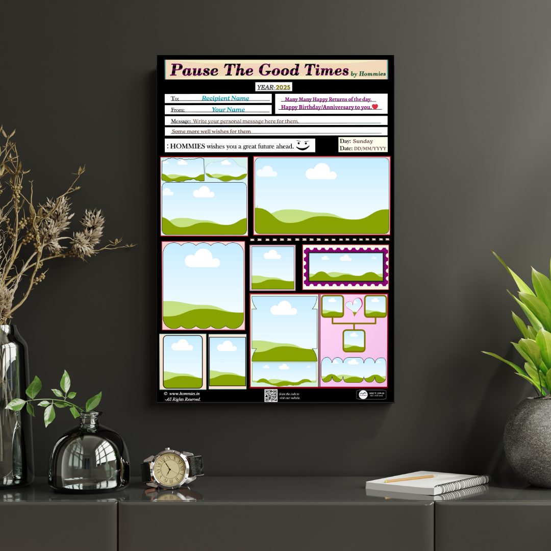 • Capture the moment, upload the photos, frame the memory, and Pause The Good Times. High quality photo-frame editable template, perfect for birthday, anniversary, or any event gift.
