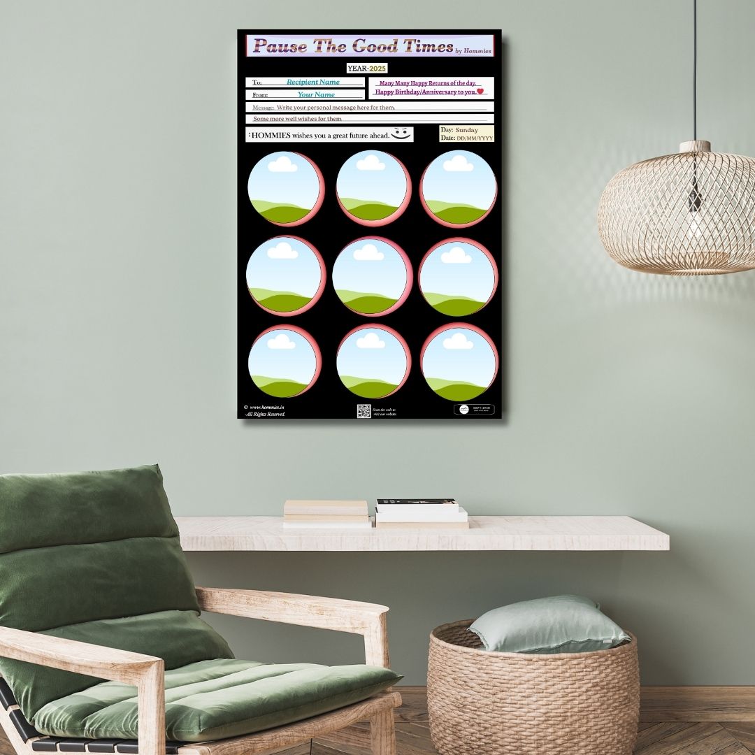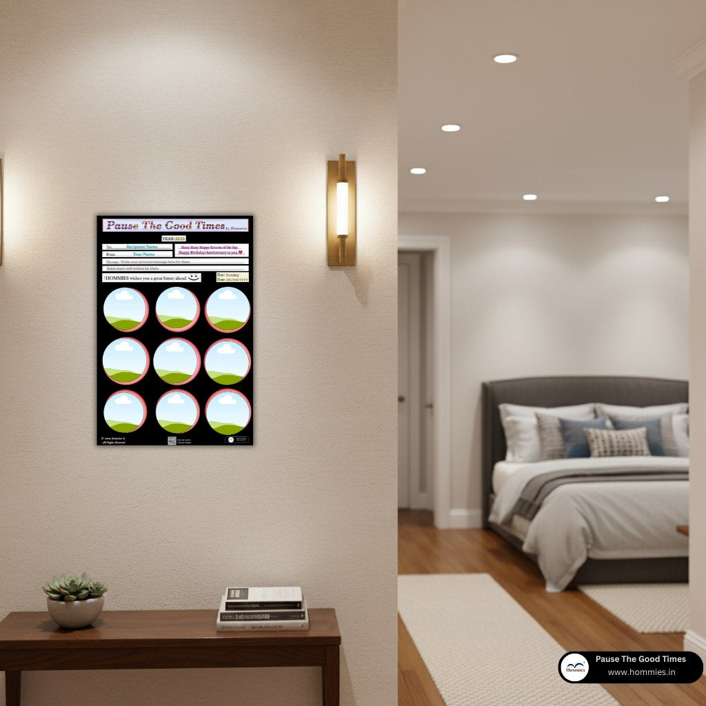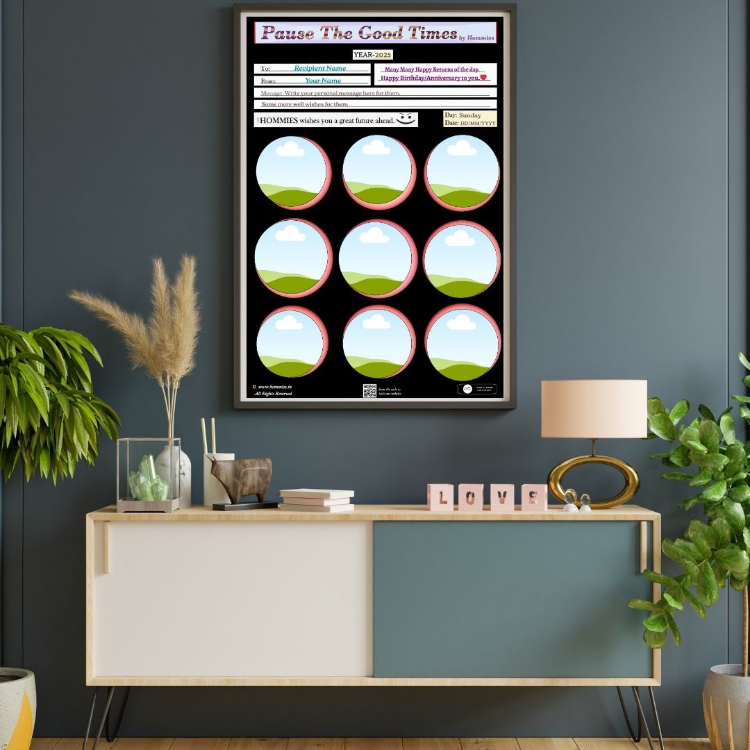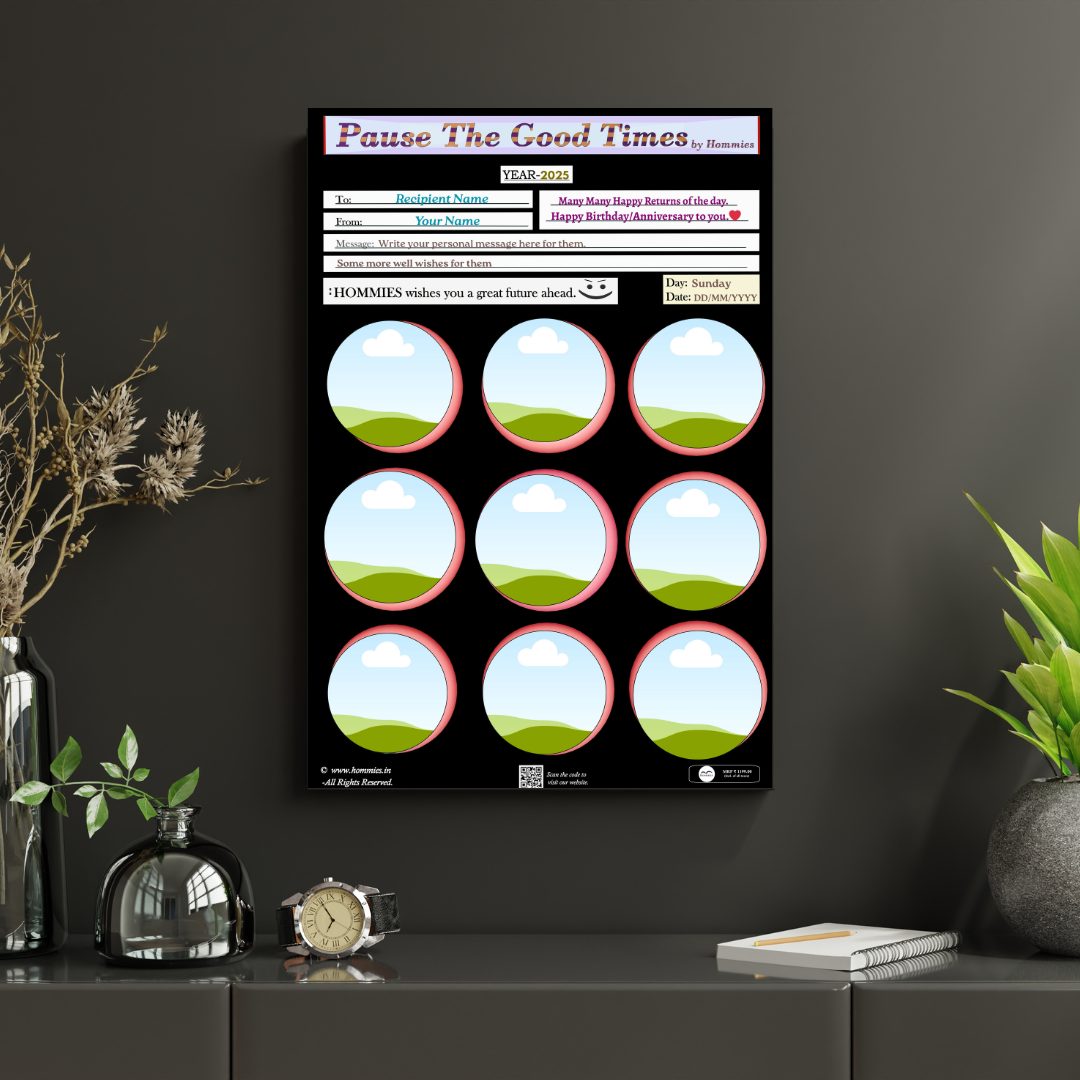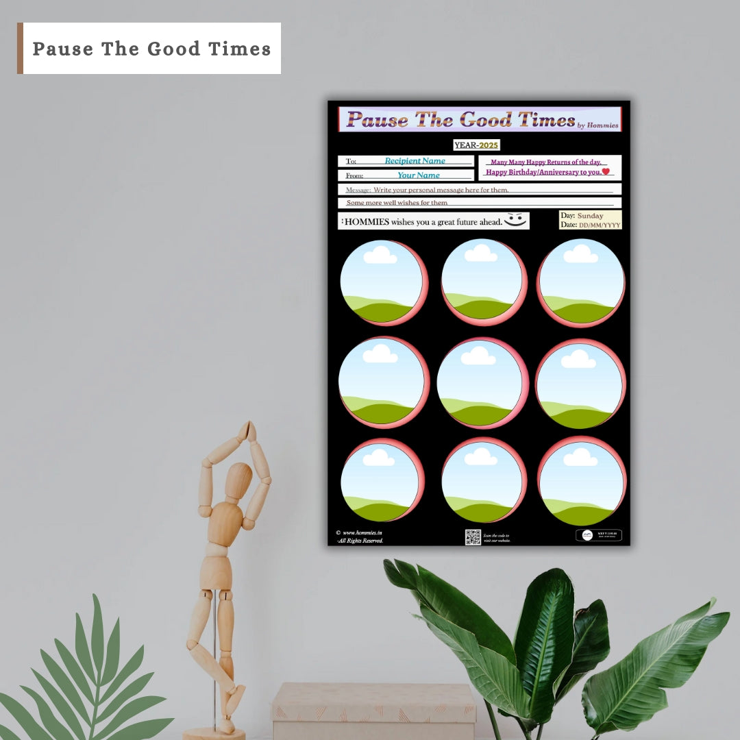 • Capture the moment, upload the photos, frame the memory, and Pause The Good Times. High quality photo-frame editable template, perfect for birthday, anniversary, or any event gift.